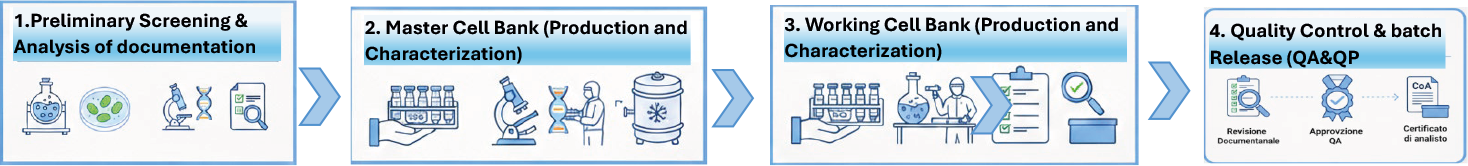 - Definition of GMP protocol, culture conditions, number of vials and QC/characterization strategy.